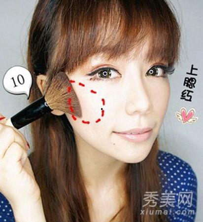 4. 腮红:在笑肌处轻轻扫上腮红,打造自然好气色。